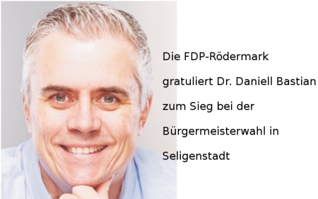 Die FDP Rödermark gratuliert Dr. Daniell Bastian zum Sieg bei der Bürgermeisterwahl in Seligenstadt